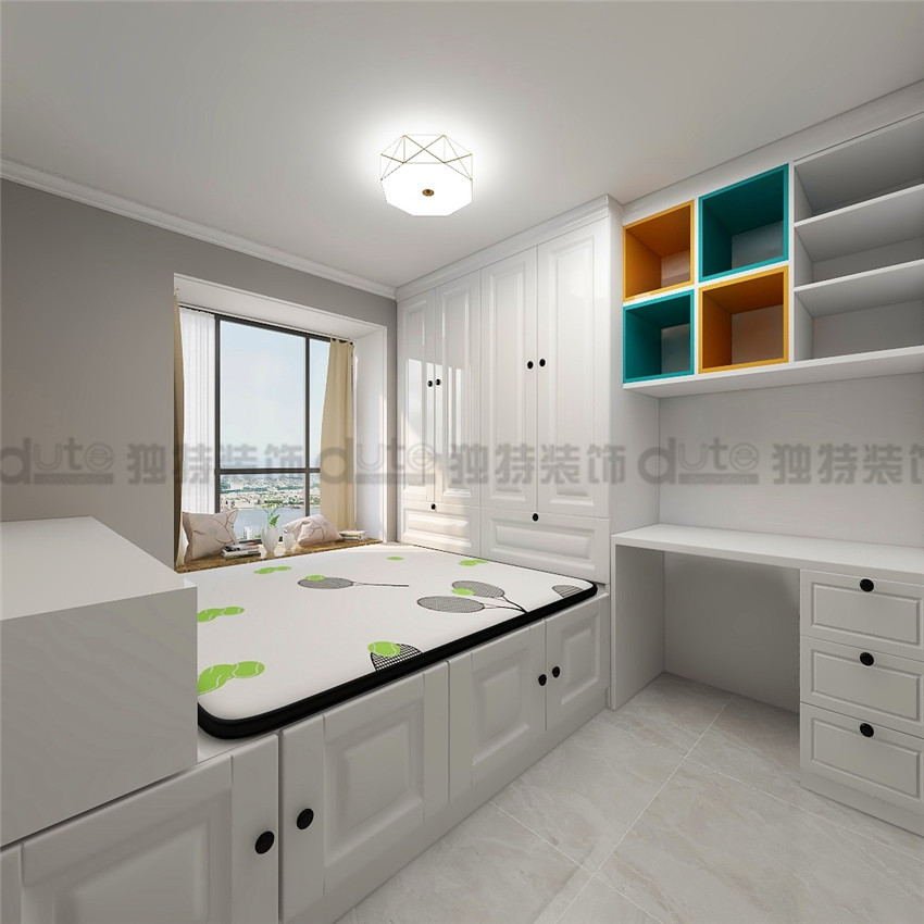 案例說(shuō)明: 業(yè)主:張女士,張姐給孩子買(mǎi)的婚房,孩子外地工作,趁端午節(jié)回來(lái)定的裝修,客戶對(duì)獨(dú)特裝飾優(yōu)樂(lè)美居體驗(yàn)館的體驗(yàn)效果非常好,最后選擇了獨(dú)特裝飾,婚房設(shè)計(jì),第一要求空間合理規(guī)劃,不要有浪費(fèi)空間,第二 ,存儲(chǔ)空間需要,所以次臥室以榻榻米+衣柜+寫(xiě)字臺(tái)為主,衛(wèi)生間無(wú)采光,采用臉色系列墻地磚,廚房空間全屋定制,空間合理規(guī)劃,戶型不足點(diǎn):1、衛(wèi)生間空間小,無(wú)法放下洗衣機(jī),洗衣機(jī)放到陽(yáng)臺(tái)區(qū)域;2、廚房空間不大,冰箱只能放客餐廳;3、入戶門(mén)廳太窄,鞋柜空間小,采用斜插式鞋柜;4、入戶正對(duì)著廚房門(mén),過(guò)道長(zhǎng),采用冰箱+隔斷處理,作為一個(gè)屏風(fēng)玄關(guān),一舉兩得;效果出來(lái)業(yè)主非常滿意。